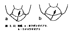 前伸腹節後背縁は丸みを帯び斜面の傾斜はよりゆるやか。