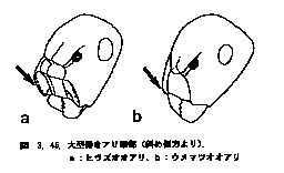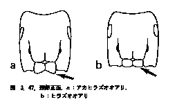 広がらないか,幅広くなっていても前伸腹節は側方から見て後背縁が鈍角となる。