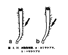 触角柄節の外縁に見える立毛は,触角べん節の屈曲方向から見て,