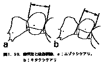 触角挿入部の前方で頭盾後縁は隆起縁となり,触角挿入部の周囲は