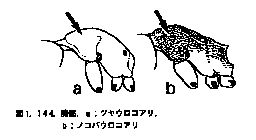 立毛があるが頭盾を除く前方部はすべて伏毛,また胸部の立毛は