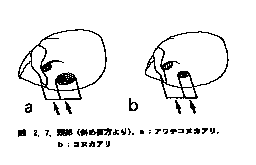 複眼はより小さく,長軸上では6個以下の個眼が並ぶ;複眼の長さは,その前端から頭盾