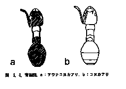 までの距離よりも長い;体色は褐色と淡黄色の二色性。 アワテコヌカアリ
