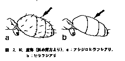 腹部第1〜3節背板に立毛はない;頭部,胸部は腹部より淡く赤褐色〜